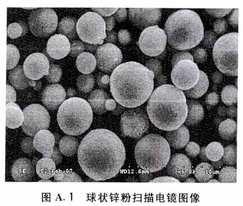 圖A.3 球狀無(wú)機(jī)鋅粉涂層掃描電鏡圖像