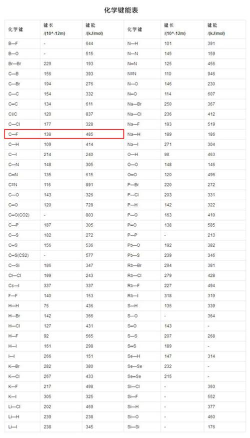 C-F化學(xué)鍵是XDY-F氟碳漆的重要性能影響因素,鍵能很強(qiáng),那么所說(shuō)的鍵能又是什么呢?化學(xué)鍵能是指1.01×105Pa和25℃下(常溫常壓下),將1mol理想氣體分子AB斷裂為中性氣態(tài)原子A和B所需要的能量,單位為KJ•mol-1。鍵能越大,化學(xué)鍵越牢固,含有該鍵的分子越穩(wěn)定。